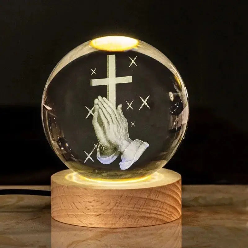 Diese leuchtende Glaubenskugel lässt christliche Motive in warmem Licht erstrahlen . Ein kleiner Moment der Stille, der das Herz berührt und im Alltag Kraft schenkt.