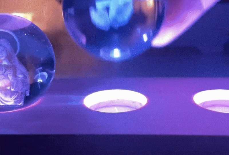 Jede Glaubenskugel zeigt ein kraftvolles christliches Motiv, sichtbar durch feinste Lasergravuren im Inneren des Kristalls.